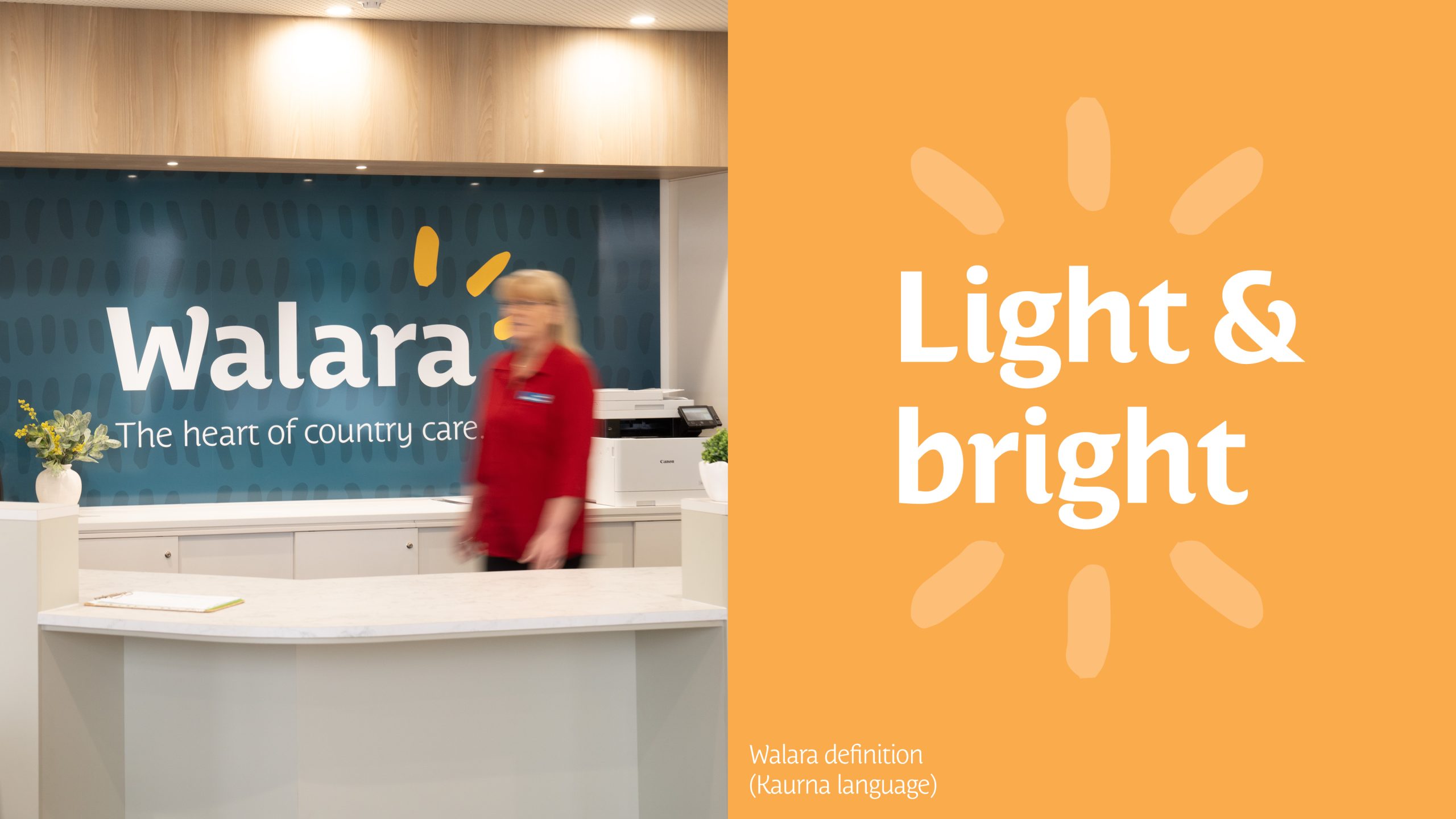 We worked closely with the CEOs, Board and staff of the aged care providers to determine a name for the organisation, Walara – meaning light and bright in Kaurna language - and define its brand strategy, brand positioning and create a new identity and look and feel.